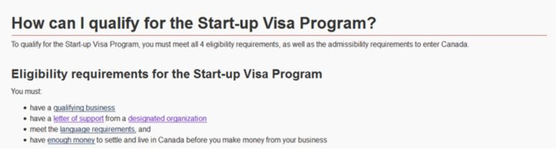 2.申请人须获得加拿大联邦政府指定机构(风险投资基金、天使投资集团和企业孵化器项目)的支持信